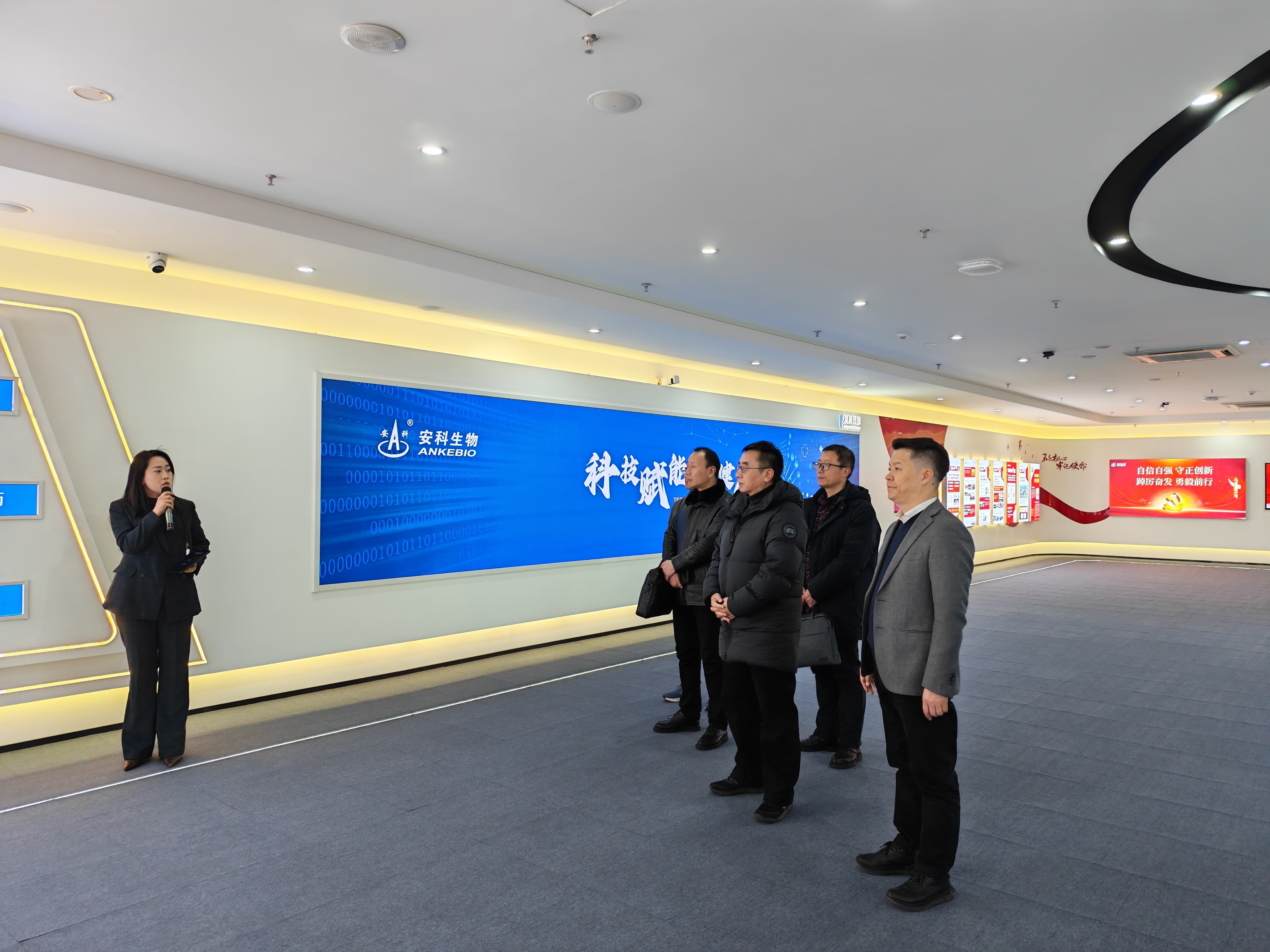 郑健一行先后走进安徽省国平药业有限公司、安徽智飞龙科马生物制药有限公司、安徽安科生物工程集团股份有限公司等多家在合成生物学技术开发与应用方面具有领先优势的企业,深入企业研发中心、生产车间,详细了解企业在菌种设计、代谢工程、生物制造等方面的技术路线与产业布局,并就行业发展趋势、关键技术瓶颈、人才需求结构等与企业负责人、技术专家进行了深入交流。