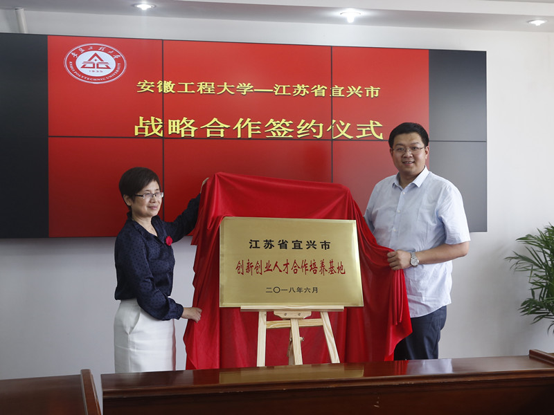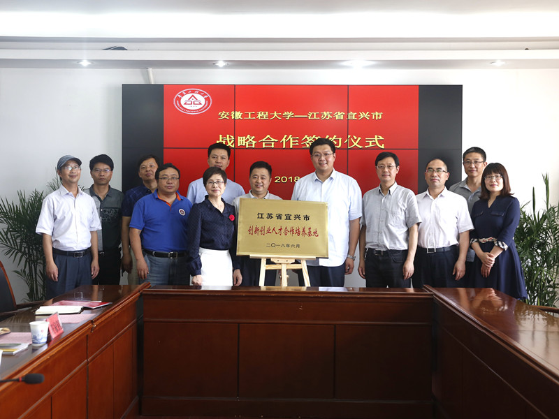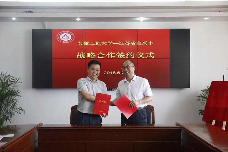 6月20日下午,“安徽工程大学-江苏省宜兴市政府战略合作签约仪式”在A座1215成功举行,校党委副书记苏国红,宜兴市副市长张京宁出席会议,宜兴市政府有关部门及学校相关职能部门、相关学院负责人参加了签约仪式。
