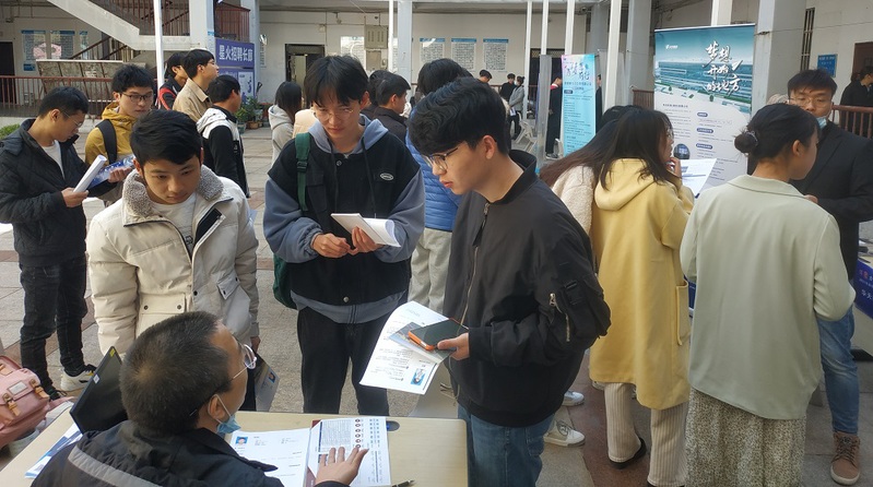 交流会举办的同时,在就业创业指导中心星火招聘长廊举办了南京市浦口区“浦聚力量,智引英才”名企专场招聘会,拉开了我校2021届校园招聘会的序幕。DXC集团、华天科技有限公司、南京大吉集团、南京依维柯汽车有限公司、南京矽邦半导体有限公司等5家公司携百余个岗位来校参会,吸引了机械类、材料类、电气自动化类、软件类及管理类等专业毕业生参加,其中DXC集团收到了80余份学生简历。