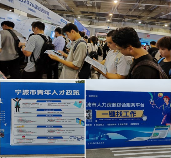 为进一步融入长江三角洲一体化发展,促进我校毕业生高质量充分就业,9月19日至20日,学校组织20名毕业生前往浙江省宁波市,参加宁波市第27届人才引进洽谈会暨“国聘行动”2026届毕业生首场综合招聘会。本次招聘会聚集各类国央企、事业单位、金融机构、科研院所、知名企业、“专精特新”企业等优质单位400余家提供23000个岗位。